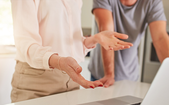 말을 시작하기 전에 상대의 주의를 끌어주세요. 가볍게 어깨를 두드리는 등의 방법이 도움이 됩니다.